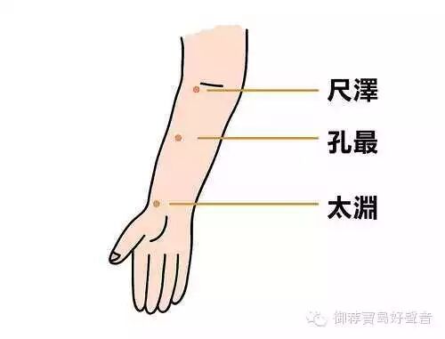 位置:位於尺澤穴和太淵穴的連線上,約距離太淵穴7寸,距離尺澤穴3寸處。